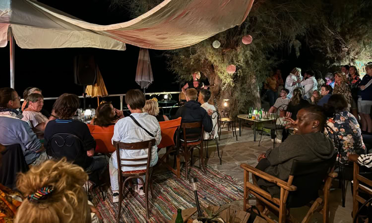 Onder het genot van een drankje en onder de spectaculaire sterrenhemel van Lesbos